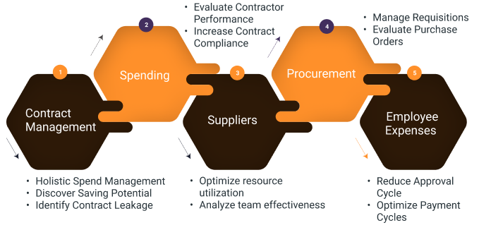 - Single integrated analytics platform offering Executives a top-down view of all their complete procurement Process